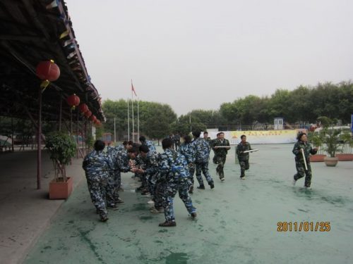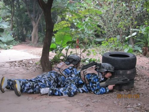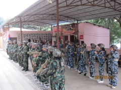 第一個活動是:野戰(zhàn)任務。隨著教練員一臉嚴肅,短短的時間,就讓大家有了軍隊嚴格訓練和服從的氣氛,綠隊和藍隊分別手持激光槍支身穿迷彩軍服在叢林與廢墟中穿梭與“敵人”展開激烈的“戰(zhàn)斗”。在娛樂當中放松,在運動當中創(chuàng)新,在激烈的競爭當中提升團隊的合作精神。