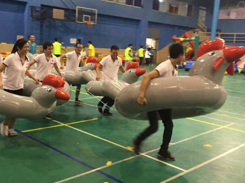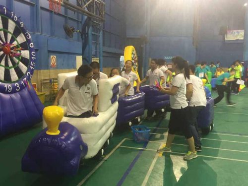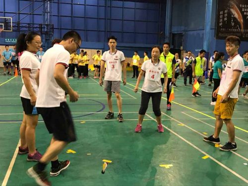 在此次活動上,共有5個活動項目:包括聞雞起舞、眾智成城、滿載而歸、暖暖的家、毽上生花。盡管體育館內炎熱難耐,但職工們依然興致盎然,賽前爭分奪秒練習比賽項目,認真進行熱身等賽前準備。賽中,在聞雞起舞、滿載而歸大家更是玩得不亦樂乎。暖暖的家項目的比賽異常激烈,因為需要男女各半,聽令開始,首名運動員在原地繞柱轉10圈后(這里臨時有參賽人員說會暈,其它職工馬上替補,展現了一個團結有愛的團隊精神),迅速走向“獨木橋”,走完“獨木橋”后,再跑向“房屋材料”和“家具”堆放點將材料及“家具”搬往拼砌區(qū)進行拼砌……參賽隊員一個個精神抖擻,隊友們都隨著比賽加油鼓勵,場面十分熱鬧。整個運動會充滿趣味性,又充滿了挑戰(zhàn)性。